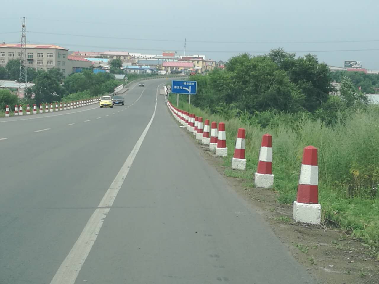 道路兩側安裝了警示柱,提高安全系數(shù)